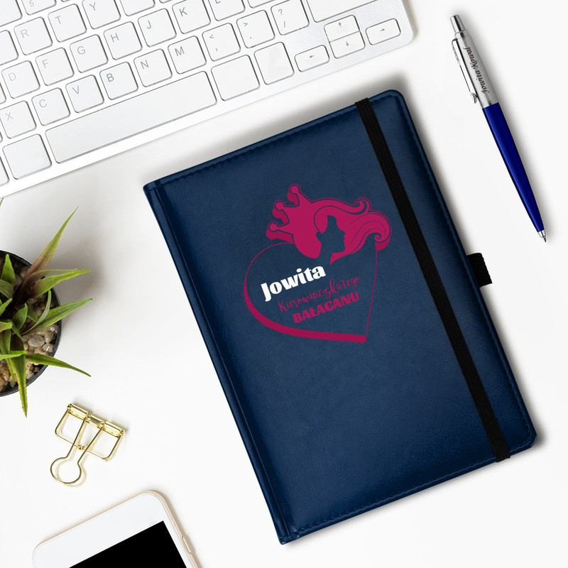 Zestaw dla kierowniczki: niebieski notes i Parker z nadrukiem UV