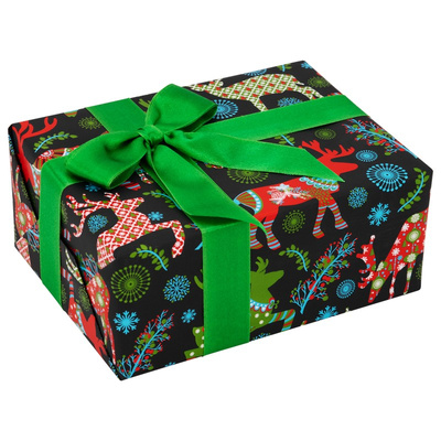 Ręczne pakowanie prezentu - świąteczny papier/zielona wstążka