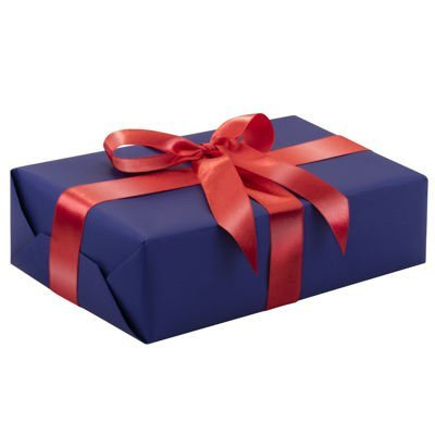 Ręczne pakowanie prezentu - czerwona tasiemka, całość zapakowane w ozdobny papier