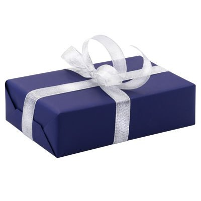 Ręczne pakowanie prezentu - srebrna tasiemka, całość zapakowane w ozdobny papier