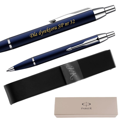 Zestaw Parker IM Niebieski CT z grawerem na długopisie i etui