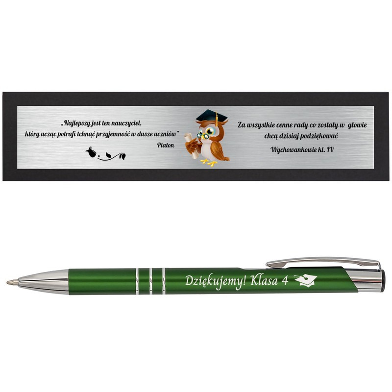 Długopis reklamowy / metalowy / Ciemnozielony ze srebrnymi wykończeniami / Dedykacja / Grawer / Twoje Logo