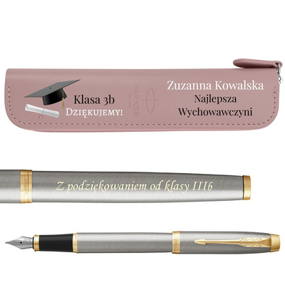 Pióro Parker IM Brushed GT z grawerem + etui Parker z nadrukiem