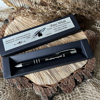Prezent dla nauczyciela: długopis z grawerem i dedykacją na pudełku