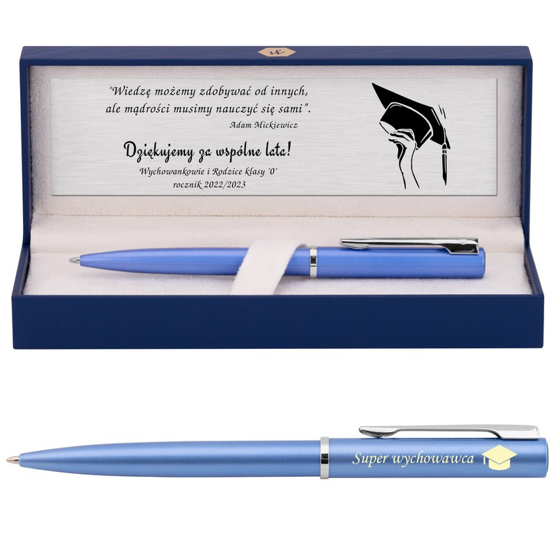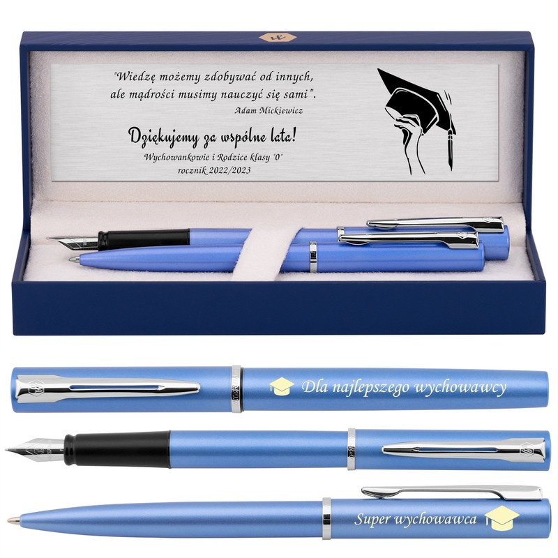 Podziękowanie dla nauczyciela: Waterman Allure błękitny z grawerem