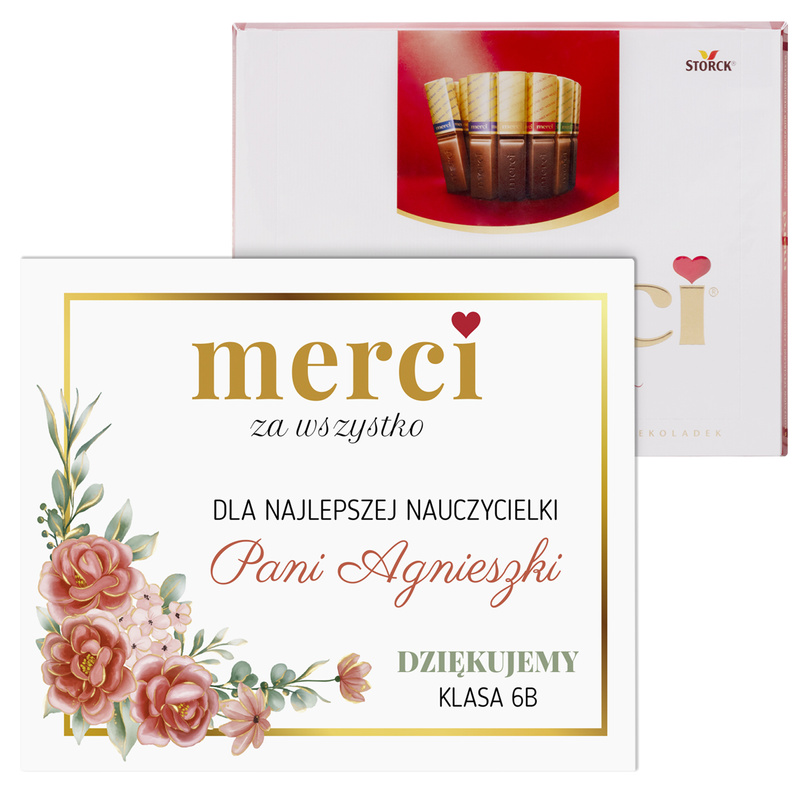 Merci z personalizowaną obwolutą – wyjątkowy prezent dla nauczyciela