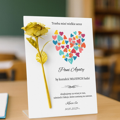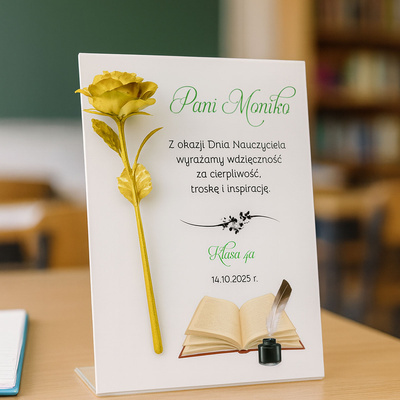 Złota róża na tabliczce z dedykacją – elegancki prezent personalizowany