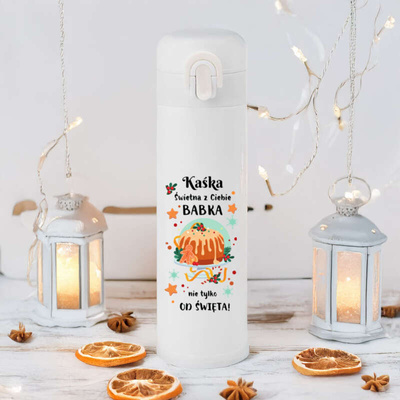 Personalizowana butelka termiczna 500 ml z nadrukiem UV – wyjątkowy prezent świąteczny dla kobiety