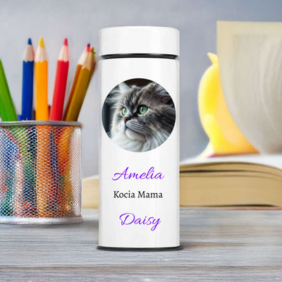 Kubek termiczny z wyświetlaczem LED i personalizowanym nadrukiem UV – idealny prezent dla miłośników kotów