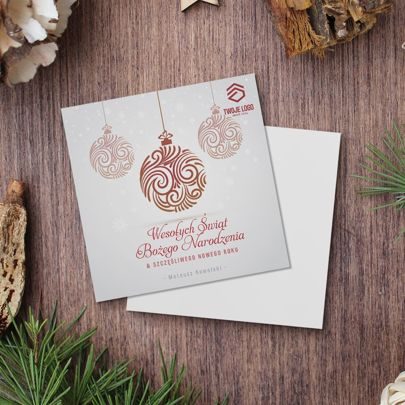 Kartka świąteczna dla firm - z logiem firmy / czerwona bombka