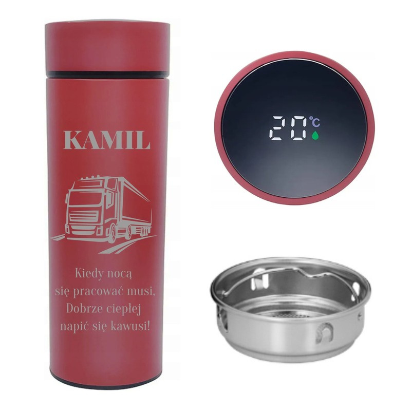 Kubek termiczny z wyświetlaczem / Czerwony / Kubek termiczny LED / Kubek z grawerem / Termos z grawerem / Prezent grawer