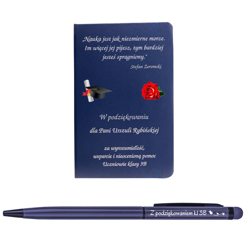Zestaw dla nauczyciela granatowy notes i długopis z nadrukiem i grawerem