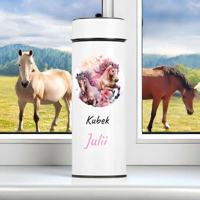 Kubek termiczny z wyświetlaczem LED i personalizowanym nadrukiem UV – idealny prezent dla miłośniczki koni