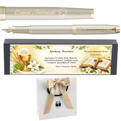 Pióro kulkowe Parker IM Monochrome Champagne z grawerem – elegancki prezent na Pierwszą Komunię Świętą