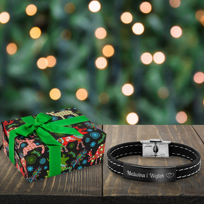 Bransoletka z kauczuku i czarnej stali szlachetnej z Grawerem / prezent dla męża, brata, chłopaka / pakowanie świąteczne