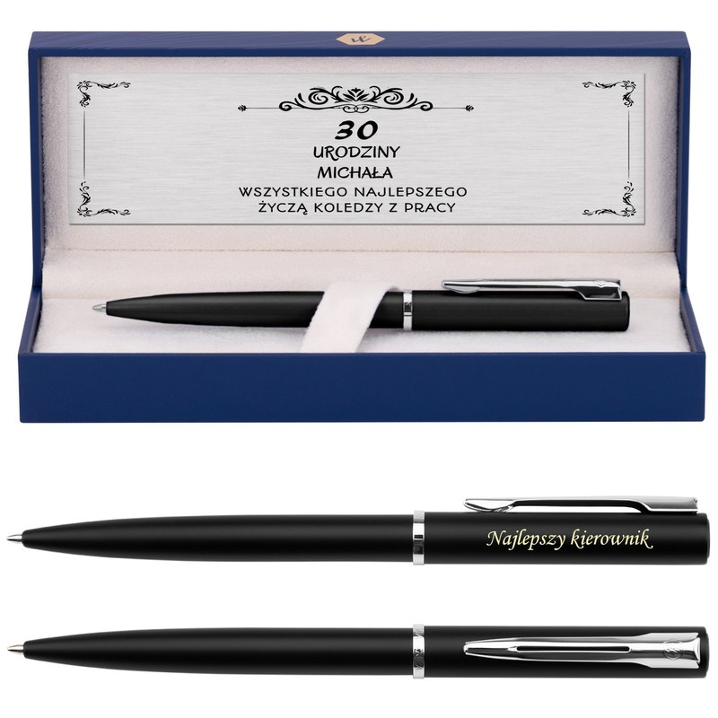 Zestaw długopis + pióro / Waterman Allure czarny CT / Pudełko z Dedykacją / Prezent dla kolegi z pracy / Dedykacja