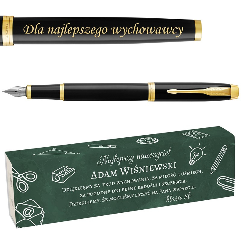 Pióro wieczne dla Nauczyciela Parker IM Czarne GT z Grawerem / Obwoluta / Prezent na Zakończenie Roku Szkolnego