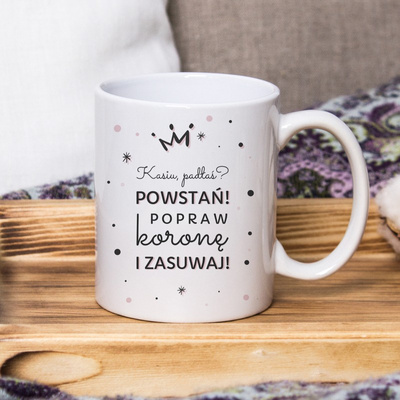 Śmieszny kubek na kawę / Popraw koronę i zasuwaj / 330 ml