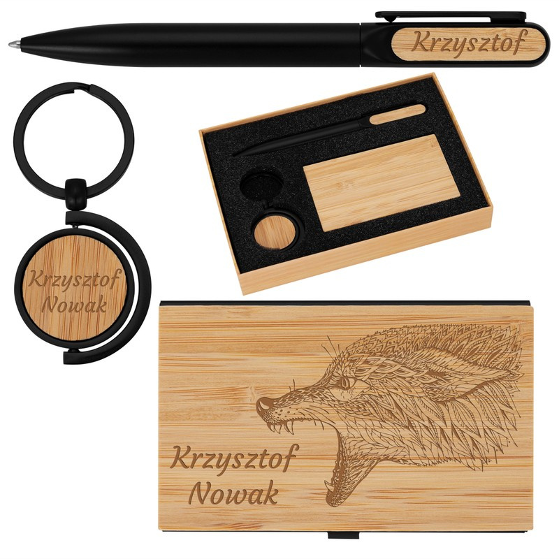 Zestaw upominkowy / Bambus / Własny Grawer / Prezent dla Niego / Prezent dla Szefa