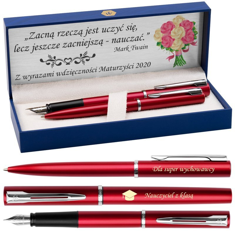 Prezent dla Nauczyciela / Zestaw długopis + pióro / Waterman Allure / Pudełko z Dedykacją / Prezent na Zakończenie Roku
