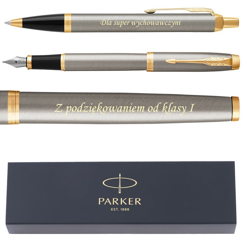 Elegancki Zestaw Parker IM GT Brushed Pióro wieczne i Długopis Grawer