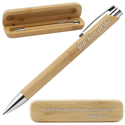 Długopis Vizela jasnobrązowy z grawerem w bambusowym etui firmy Vizela