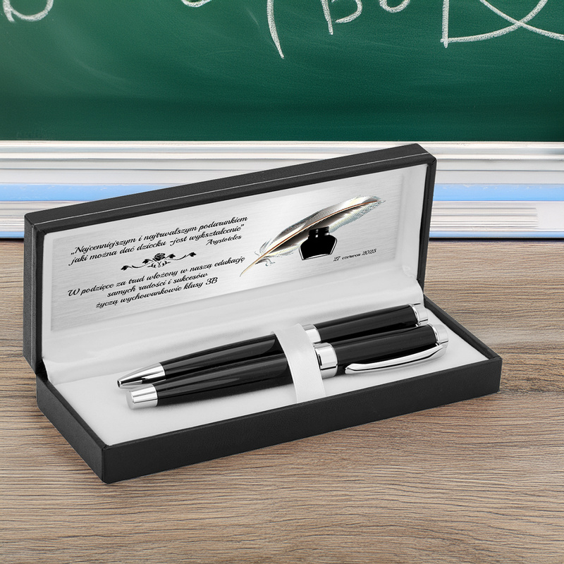 Zestaw piśmienny długopis + pióro kulkowe korkowane Dedykacja