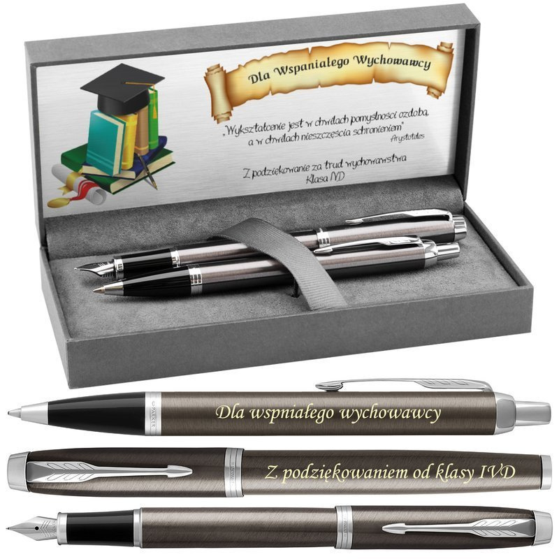Zestaw Parker IM Brushed GT: pióro i długopis z grawerem prezentowy