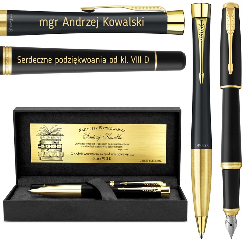 Zestaw Parker Urban czarny GT: pióro wieczne i długopis z grawerem