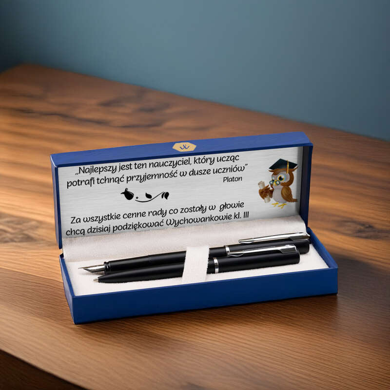 Prezent dla Nauczyciela / Zestaw długopis + pióro / Waterman Allure / Pudełko z Dedykacją / Prezent na Zakończenie Roku
