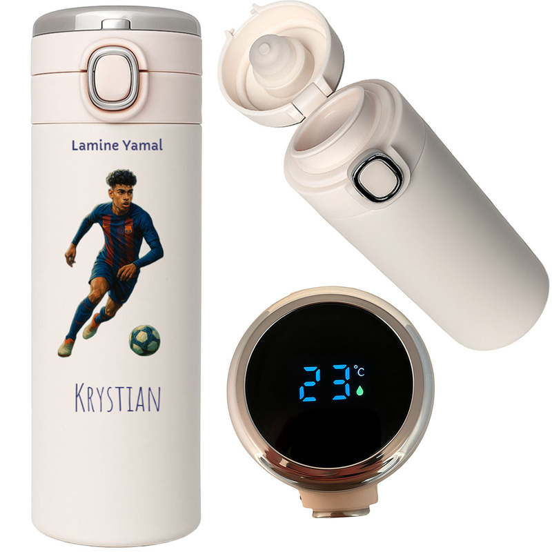 Kubek termiczny LED i personalizowanym nadrukiem UV prezent dla fana piłki/ Lamine Yamal