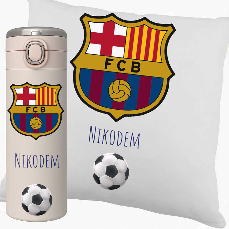 Kubek termiczny LED z personalizowanym nadrukiem UV + poduszka – prezent dla fana FC Barcelony