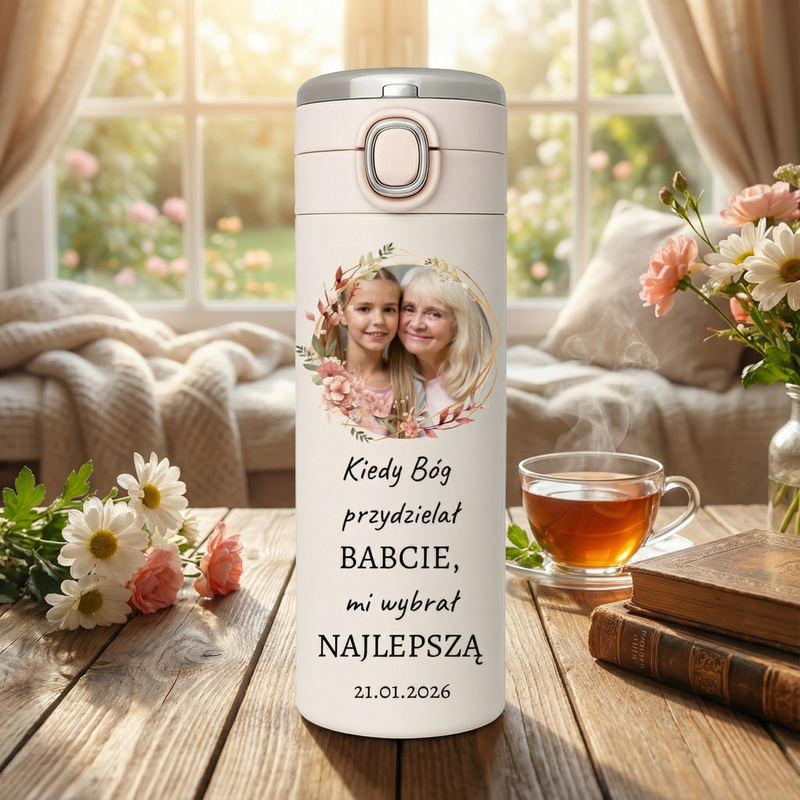 Personalizowany kubek termiczny ze zdjęciem – „Kubek naszej ukochanej Babci ...”