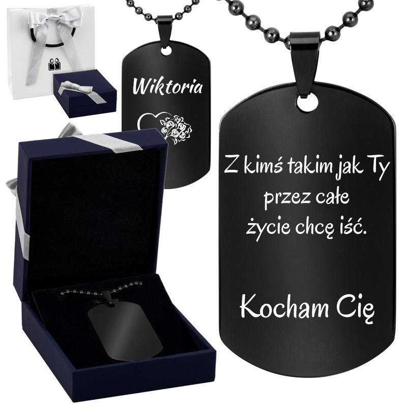 Nieśmiertelnik ze stali szlachetnej / czarny / pudełko z kokardką / GRAWER