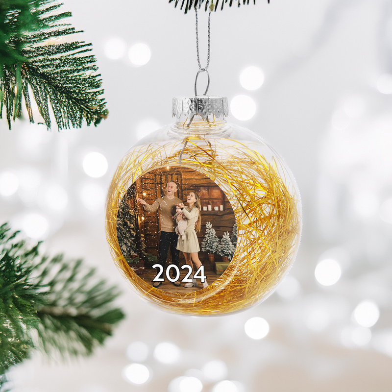 Dodaj blask i osobisty akcent swojej świątecznej dekoracji dzięki bombce ze szkła akrylowego o średnicy 8 cm. Wypełniona delikatnymi złotymi nitkami, bombka zyskuje elegancję i wyjątkowy, świąteczny charakter. Dzięki nadrukowi możesz umieścić w środku zdjęcie bliskiej osoby, dedykację lub świąteczną grafikę, tworząc unikalną ozdobę lub prezent, który oczaruje każdego.